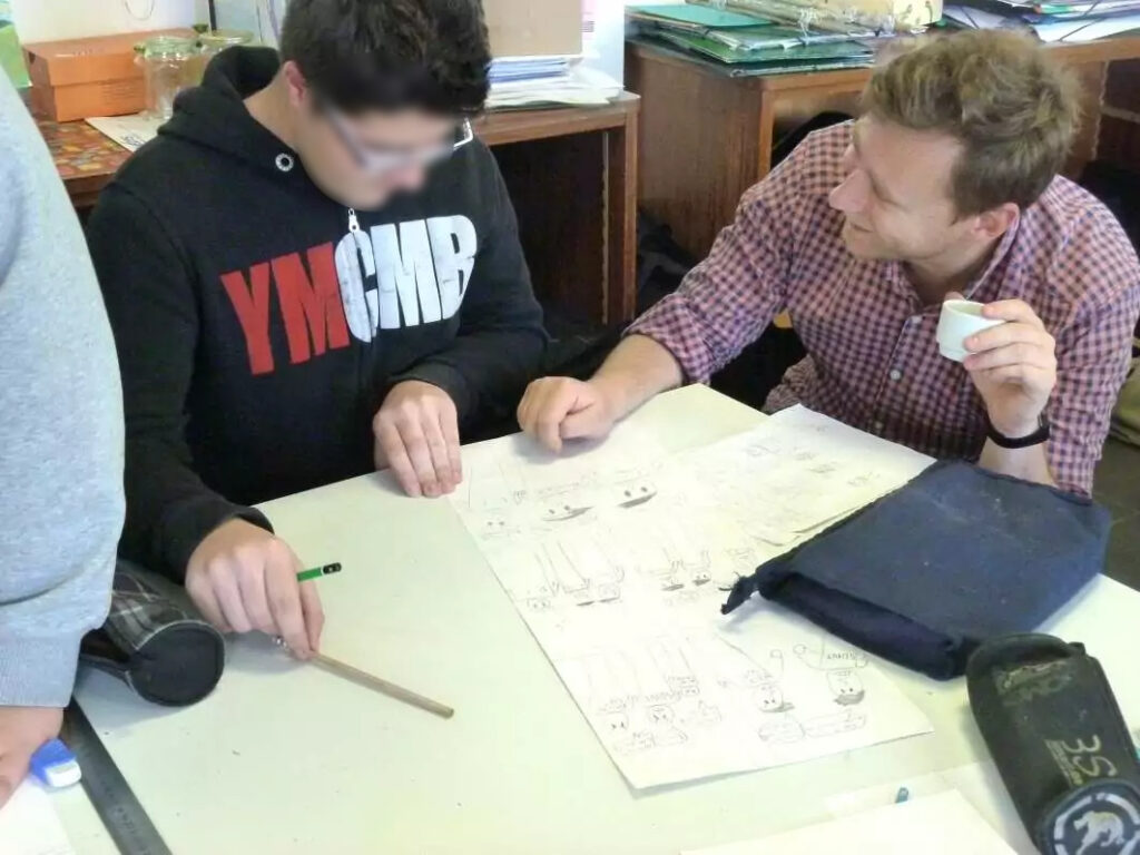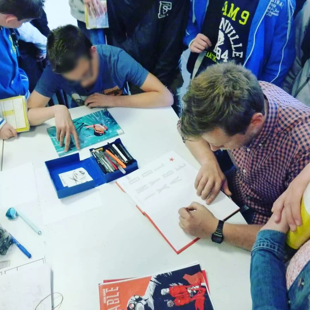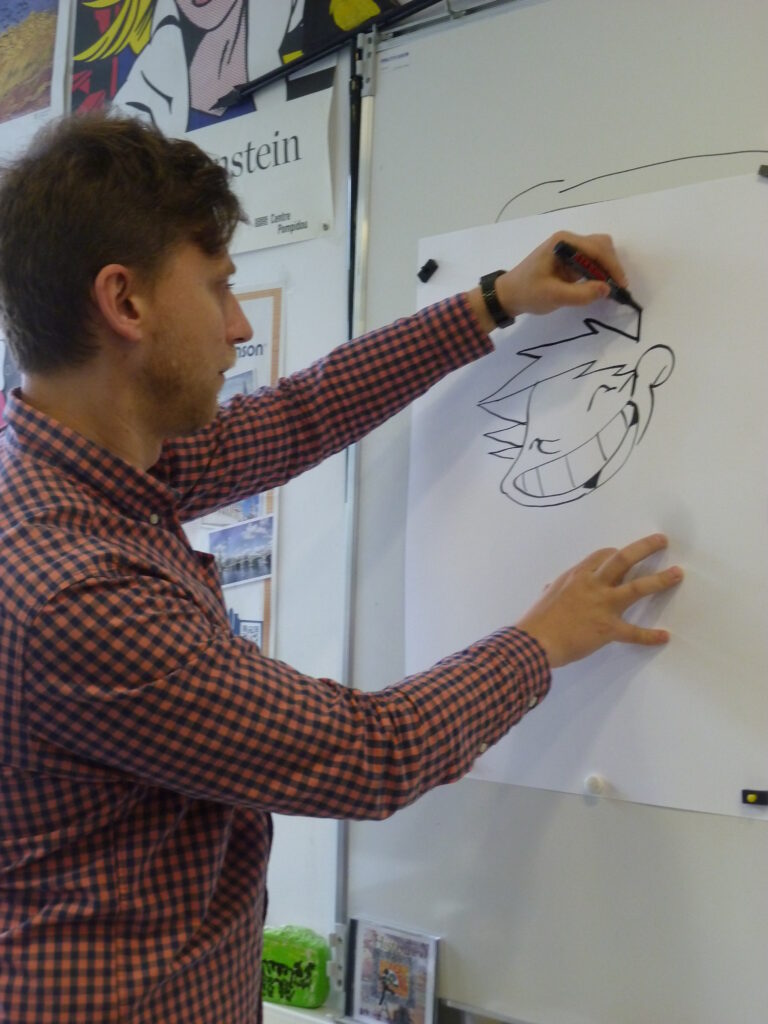 Plusieurs auteurs de BD sont venus présenter leurs œuvres et participer à l’élaboration d’une planche de BD avec les élèves :