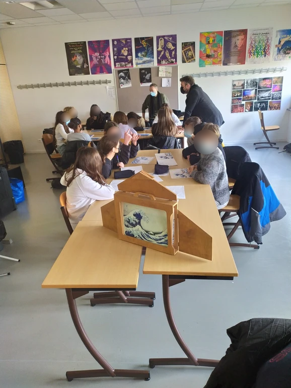 Les élèves ont ainsi pu mêler sons et images pour proposer au public une nouvelle vision des tableaux d’Hokusai (la vague), van Gogh (nuit étoilée) et Miro (constellations).