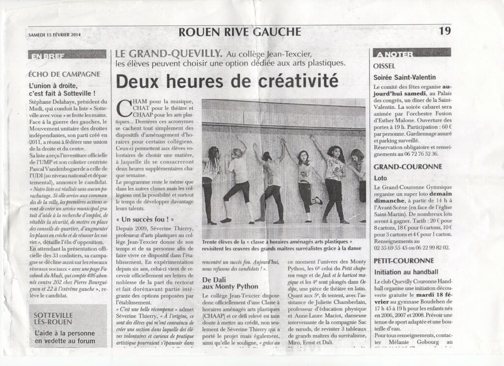 Découverte et pratique de la danse contemporaine avec l’intervention des Compagnies de danse comme sac de nœuds et Sixième dimension.